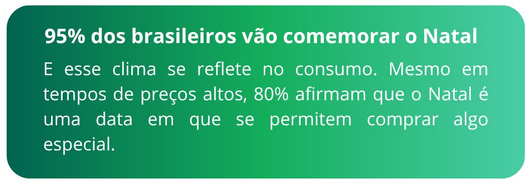 Permissão para gastar: mesmo em tempos de preços altos, 80% dos brasileiros se permitem comprar algo especial no Natal. É o momento de quebrar a cautela e investir em itens que trazem significado.