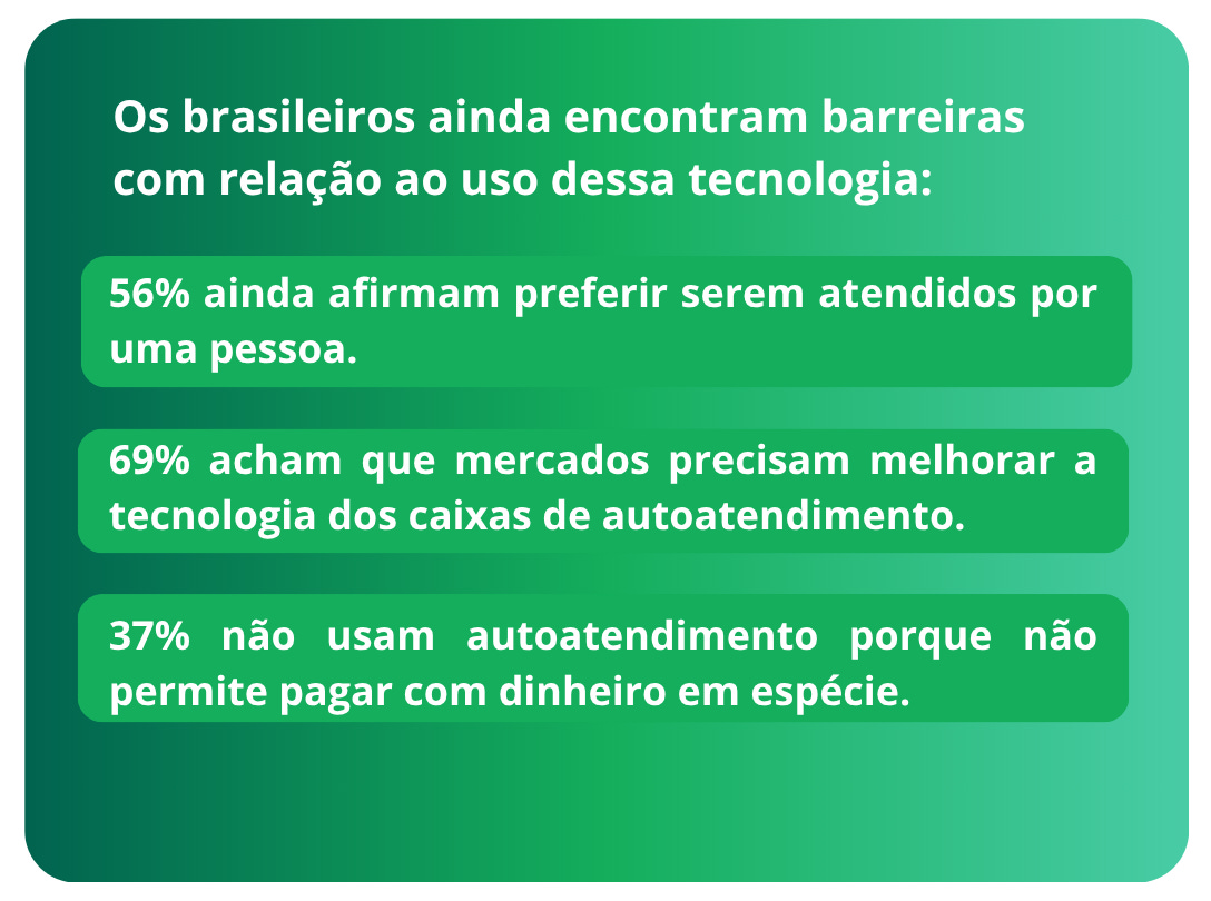O autoatendimento vem se consolidando como uma alternativa prática para compras rápidas, valorizado pela autonomia e economia de tempo. Os consumidores apreciam poder escanear e pagar sozinhos, evitando filas e revisando o valor total com calma.