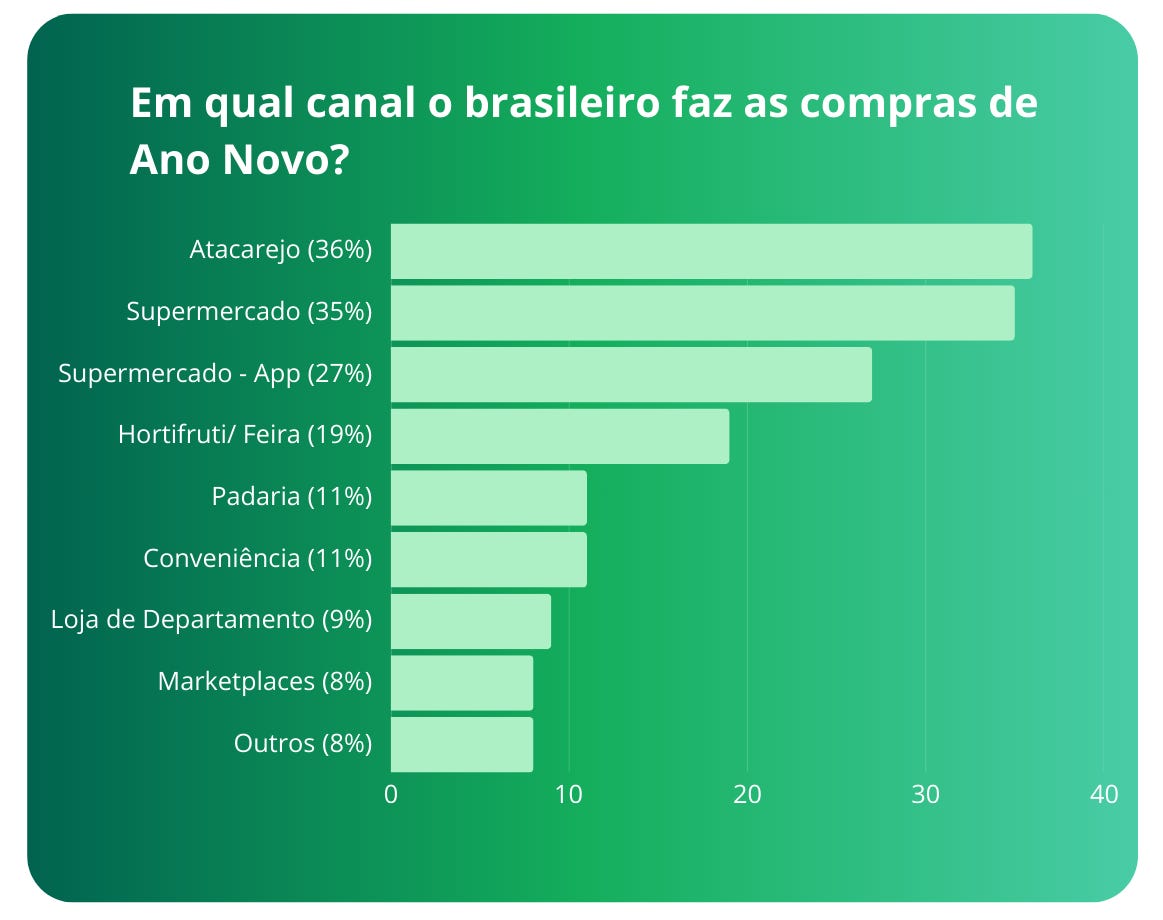 Atacarejos e supermercados se consolidam como protagonistas no abastecimento familiar para ambas as datas. No entanto, o Ano Novo apresenta uma particularidade: a busca por alimentos frescos e leves, o que confere maior relevância a hortifrutis e feiras em comparação com o Natal.