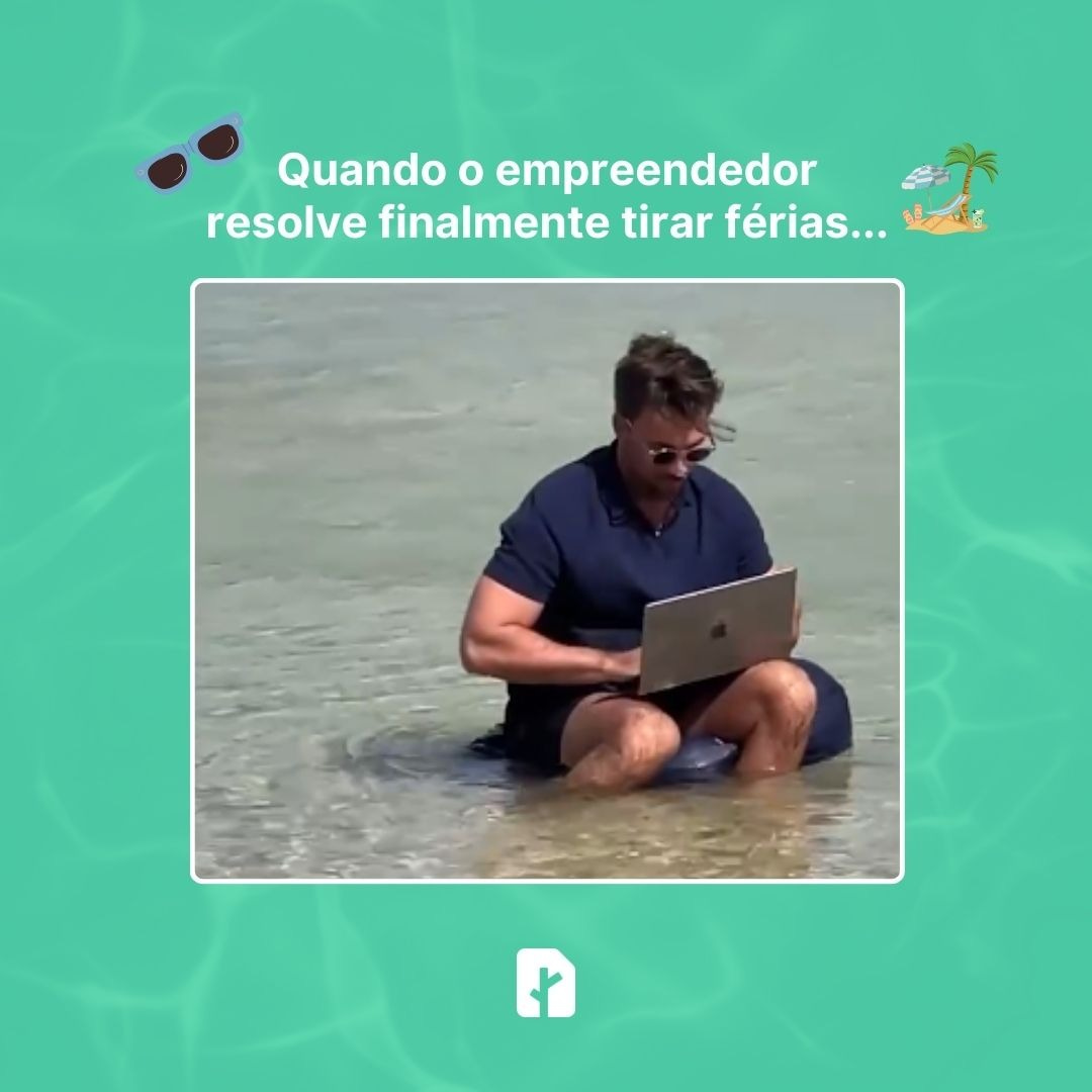 Quando o empreendedor finalmente resolve tirar férias. Lá está ele: equilibrando o notebook numa boia na praia. 🏖️