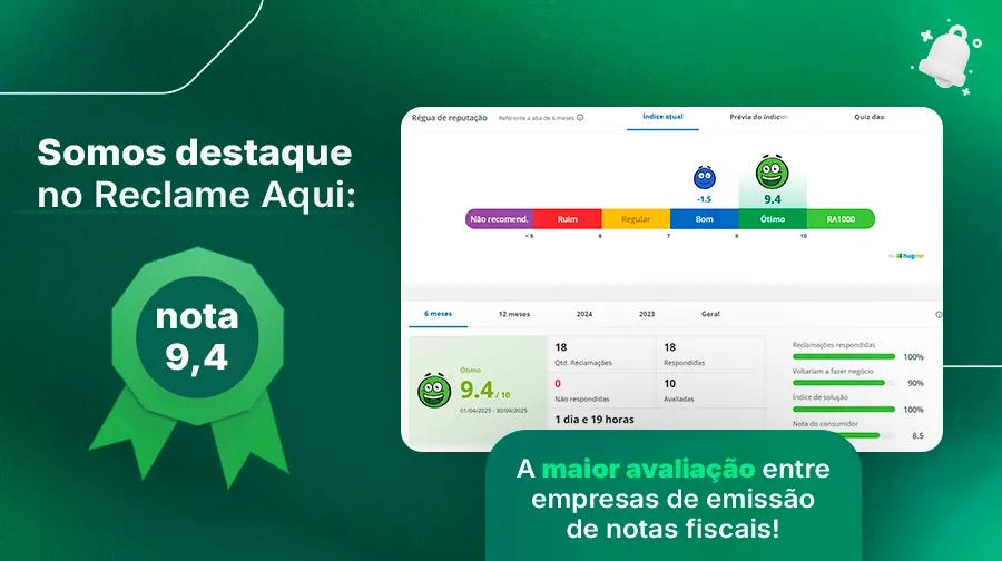 Uma conquista que reforça nosso compromisso com cada cliente. Somos, com orgulho, a empresa do segmento de emissores fiscais com a melhor avaliação da plataforma.