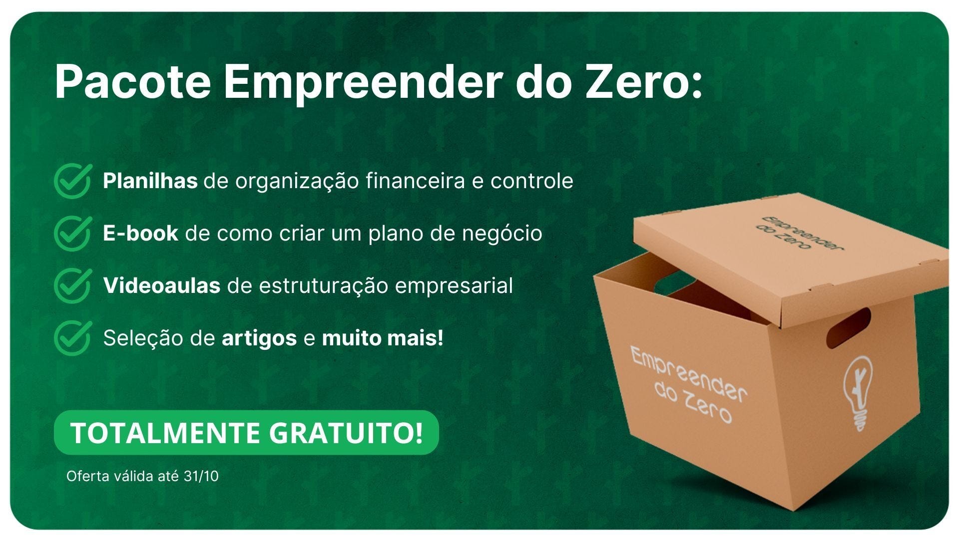 Em outubro, lançamos a campanha do Mês do Empreendedor e ofertamos o Pacote Empreender do Zero: uma série de videoaulas, planilhas e e-book para tirar sua empresa do papel.
